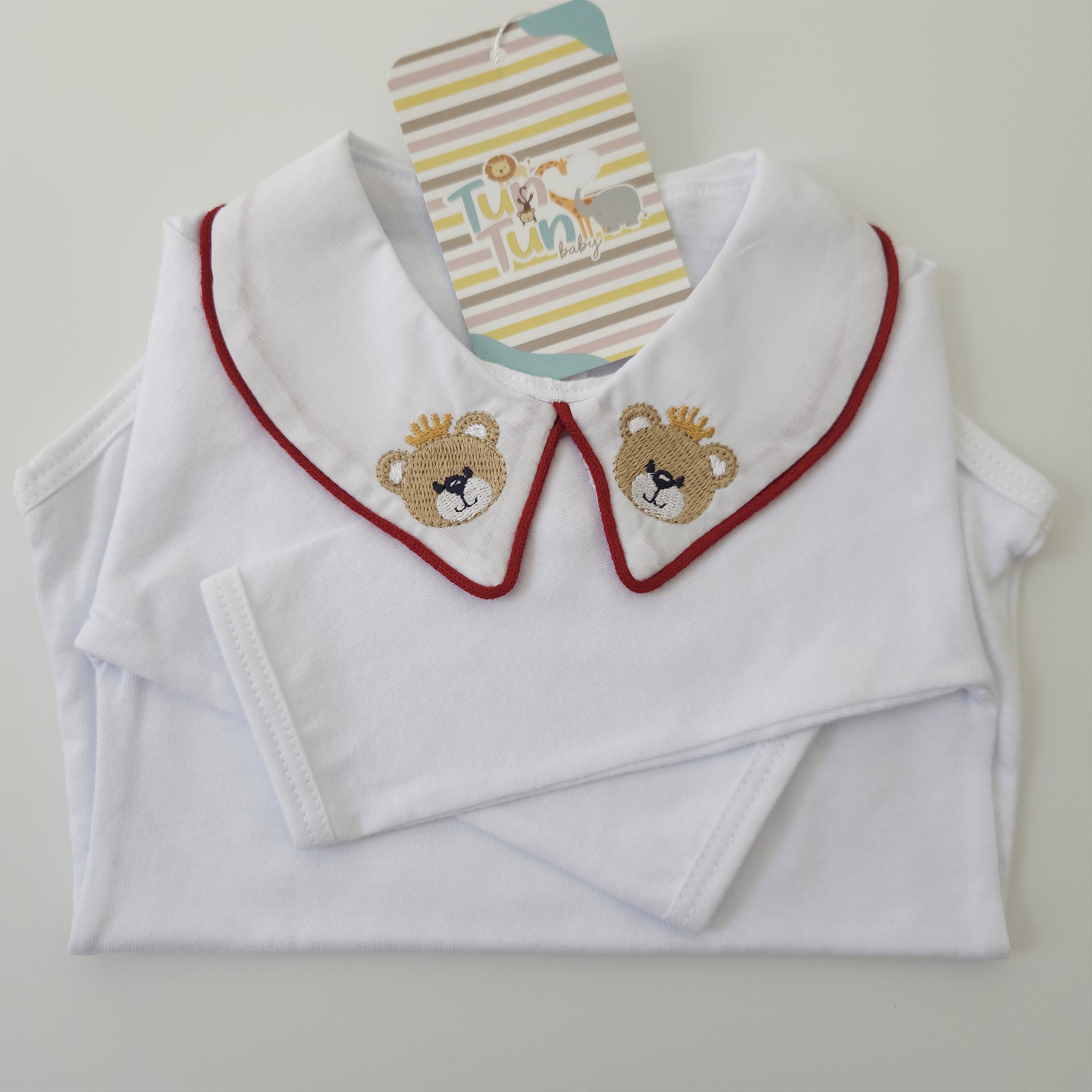 Este body é uma peça indispensável para compor o conjunto de saída maternidade do seu bebê.