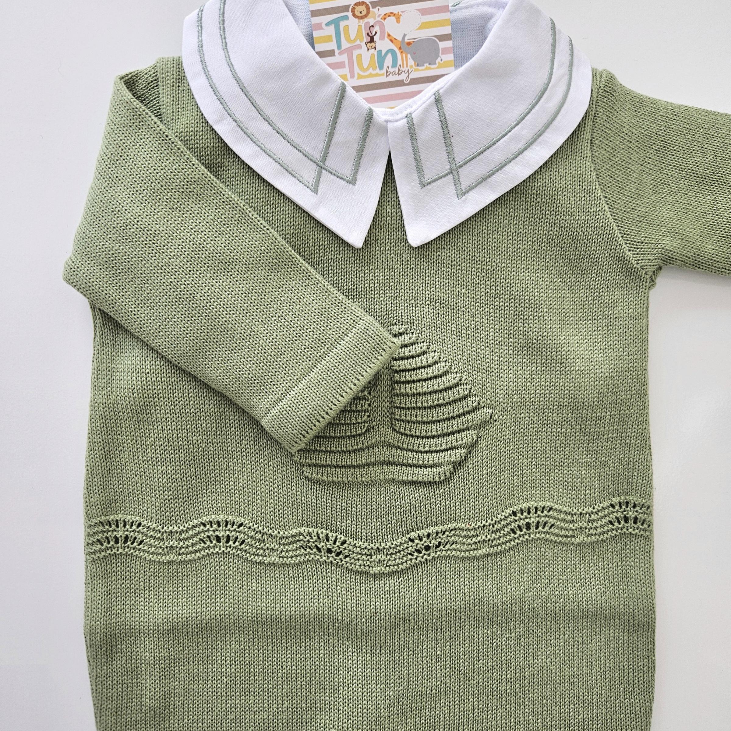 Lindo macacão, com detalhe de barquinho em alto relevo.