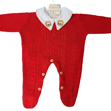 Lindo macacão, com detalhes do ponto em trança e botões de madeira.