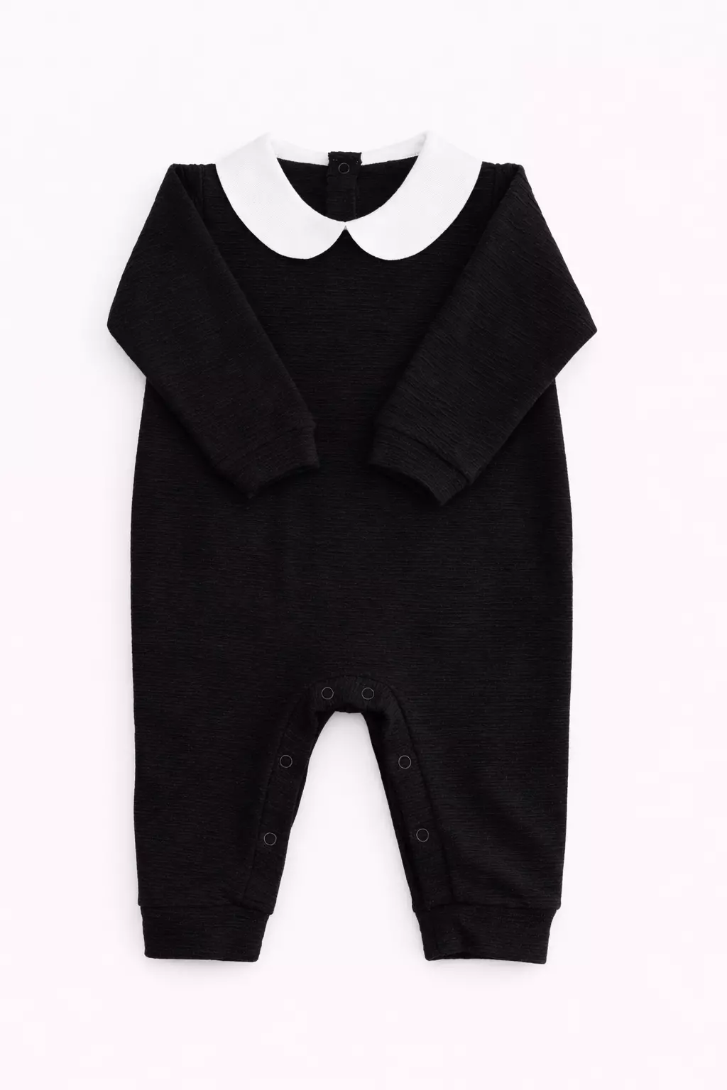 Macacão de moletinho, confortável e macio, com gola que traz um acabamento especial e um charme para a peça.