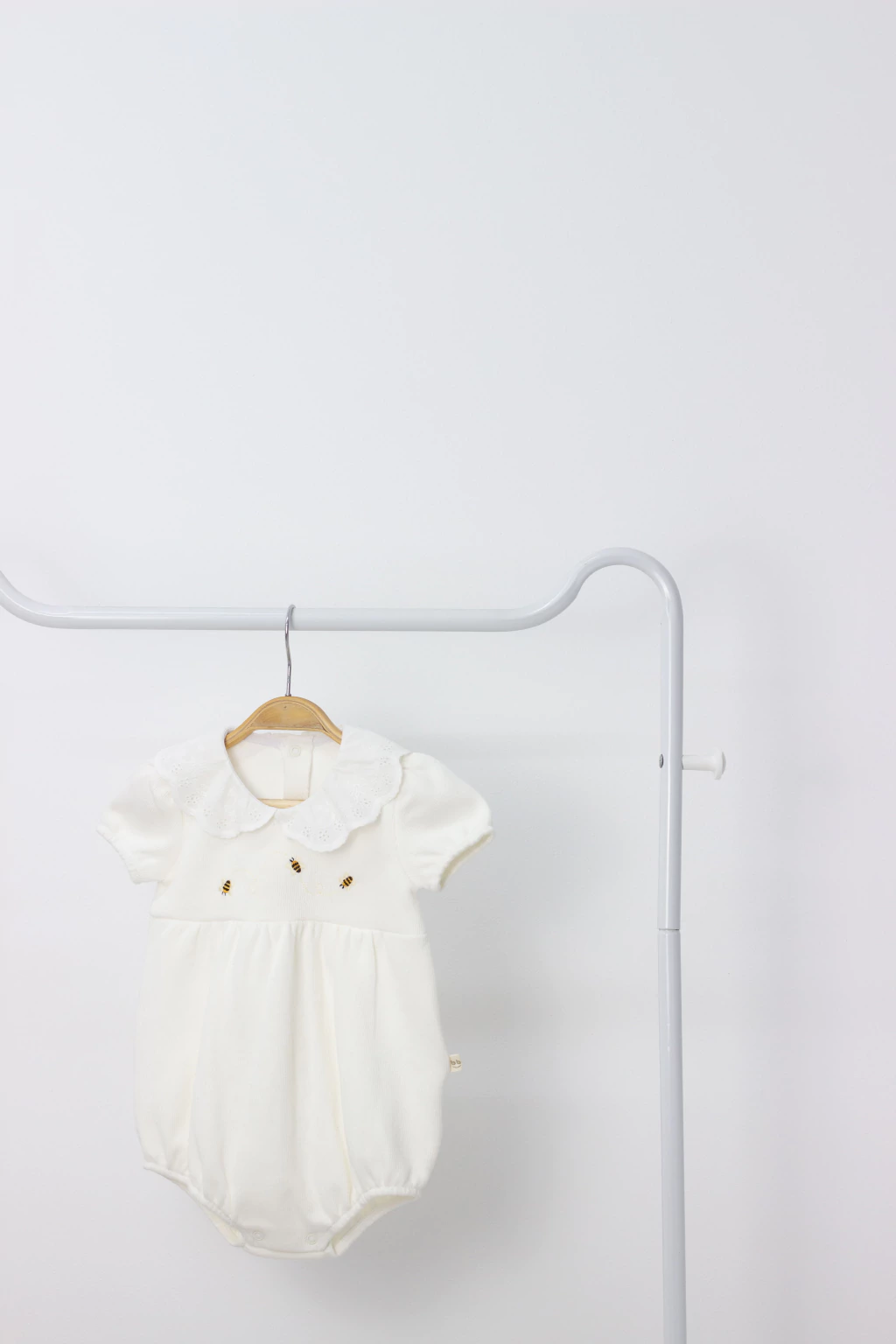Possui bordado no peito e gola em bordado inglês em algodão, mangas bufantes, esse romper é um verdadeiro charme e aconchego para o bebê. Ideal para proporcionar conforto e elegância em qualquer ocasião.