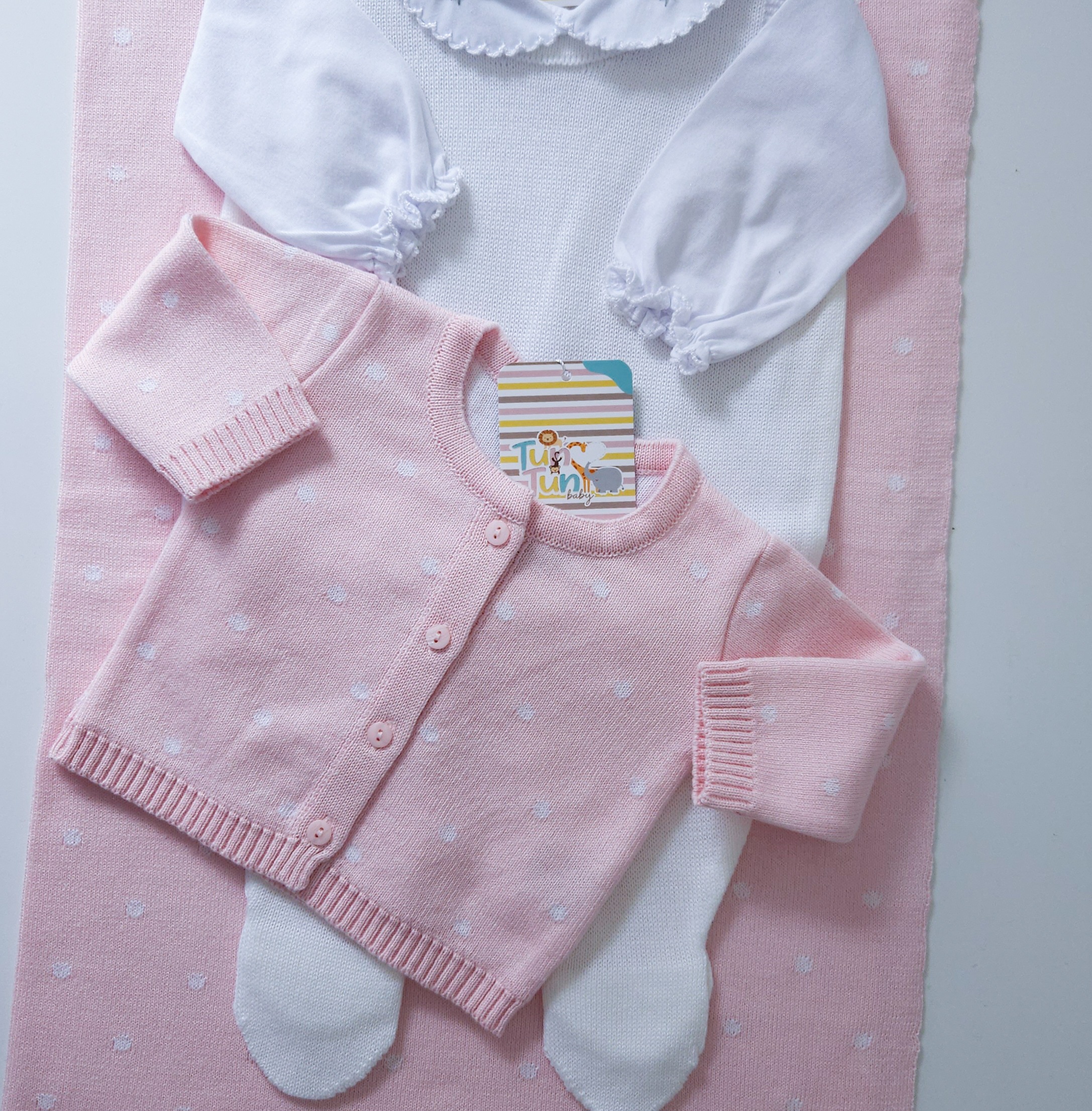 Casaco em jacquard poá com abertura frontal.