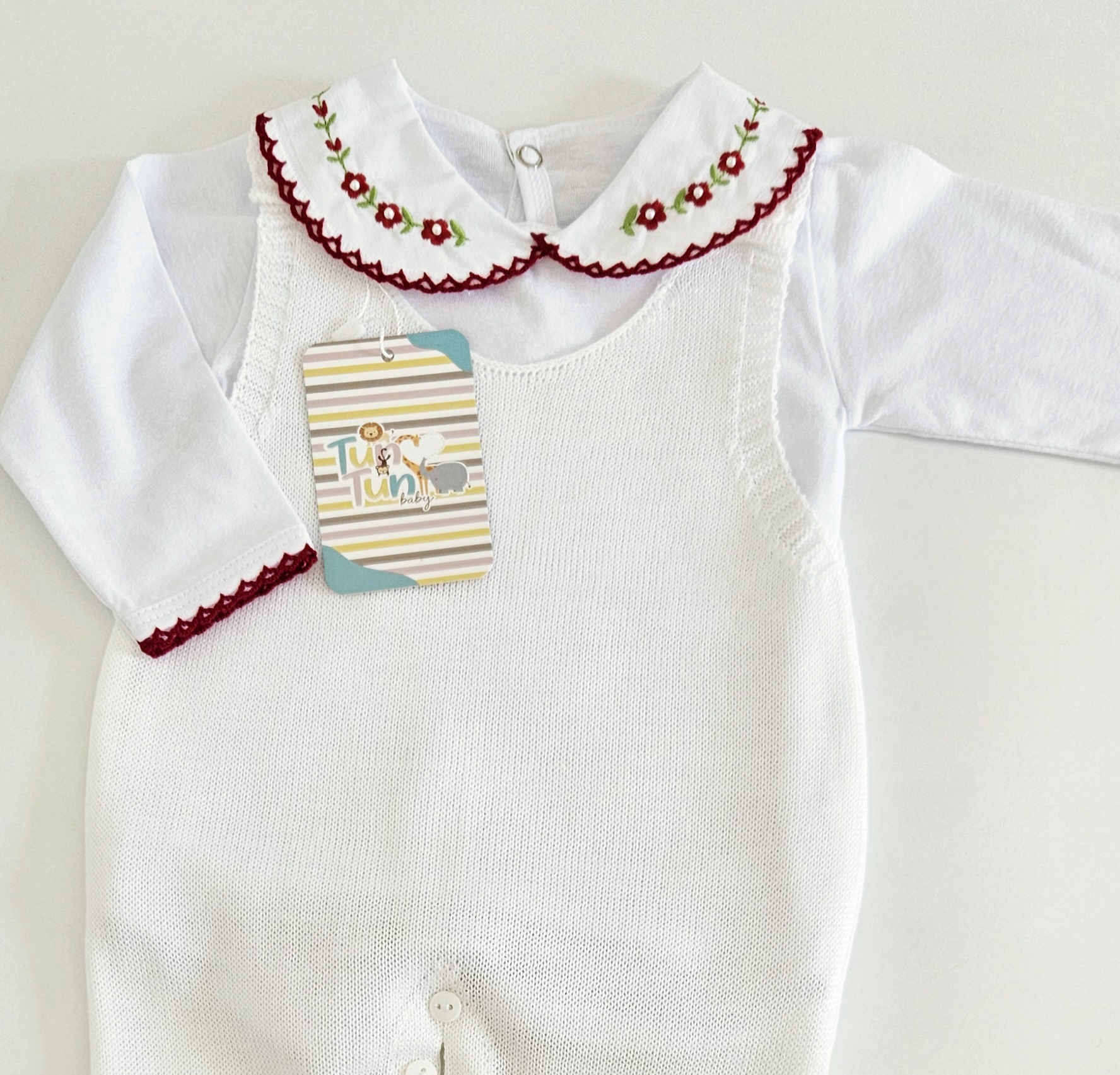 Este body é uma peça indispensável para compor o conjunto de saída maternidade do seu bebê.